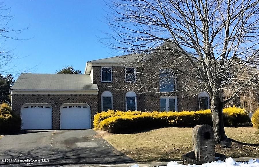 Beautiful two story brick front 5 bedroom, 2.5 bathroom Colonial with ceramic tiled grand foyer with arched windows leading to expansive open kitchen featuring center island, granite counter tops and stainless steel appliances. Family room appointed with wood burning fireplace. Living room, dining room, bedroom, laundry and powder rooms complete the first level. Hardwood maple floors throughout all bedrooms and spacious closets. Master suite features hardwood flooring, master walk-in closets, master bathroom complete with separate large shower and jetted Jacuzzi tub. Landscaped yard with fenced private backyard, sitting on a large half acre lot. Two car attached garage. Convenient location close to NYC (Rt.79 Bus to Manhattan within walking distance) transportation, major routes, Garden State Parkway and shopping centers. Top rated school system including Monmouth Vocation High School and Freehold Regional High School.