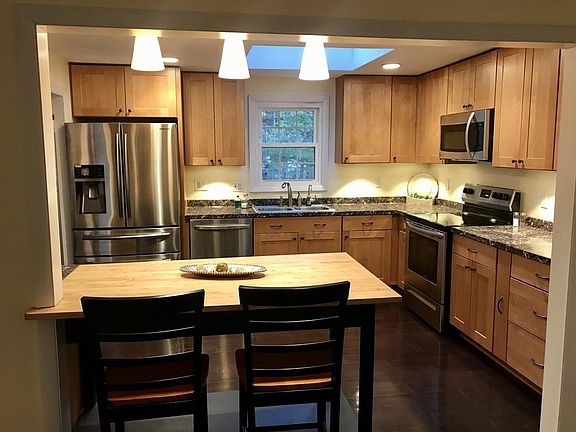 • Kit Dscrp: Flooring - Hardwood, Cabinets - Upgraded, Skylight, Stainless Steel Appliances, Open Floor Plan, Recessed Lighting, Peninsula, Lighting - Pendant