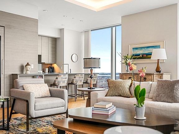Four Seasons Residences. Exquisite 2 bedroom + separate home office that easily transforms into a 3 bedroom via custom murphy bed! This elegant 40th flr corner home was designed / decorated by Daher Interior Designs. Breathtaking sunsets & panoramic views that span from Boston Harbor to the Charles River. Stunning design elements include custom built-ins, lighting, wood detailing, white oak flooring & finishes throughout. The Gallery inspired entry hall & elegant rotunda invite you to the expansive entertaining space that features unique floor-to-ceiling curved glass windows,11 ft cove ceilings, & gas fireplace with stone surround. Sleek SieMatic kitchen features top-of-the line appliances, vented gas cooking & breakfast bar. Both stunning bedroom suites have en-suite bathrooms & generous custom closets. Residents will enjoy a service rich lifestyle offering 24/7 concierge, valet services, 3 levels of state-of-the art amenities, & multiple dining options including ZUMA. 1 Valet PKG.