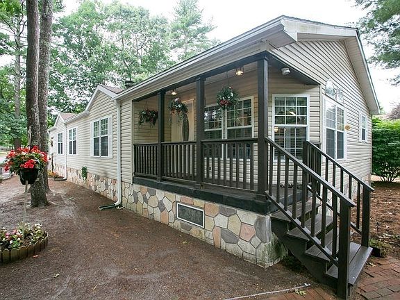 When you drive into Meadow Woods Adult Living Community, you can feel the tranquility of this desirable neighborhood. This lovely manufactured home with cathedral ceilings is MOVE IN READY! The current owners purchased the home 6 years ago. Since then, the following improvements were made: new stainless steel appliances, granite countertops, cherry laminate floors, central heating and air conditioning, water heater, and roof. The master suite is welcoming with it's reading nook, tub for two, and large walk-in shower. A three season room and a cozy patio provide space for relaxation any time of the year. This is one of just a few homes in Meadow Woods which has a fireplace and a carport. Sellers will sell home furnished for an additional $3,000.