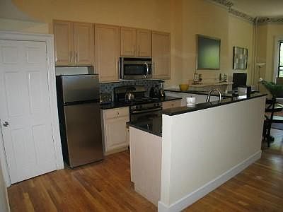 This large 2 bedroom one bathroom apartment features all new furnishings. In one of the bedrooms is found a king size bed. The 2nd bedroom has a queen size bed. Both bedrooms feature closets with built in shelves and drawers....In the living room is a television, stereo, DVD player and phone. The apartment also features air conditioning, wireless internet service,hardwood floors thru out and a great kitchen. the kitchen has all new stainless steel appliances.