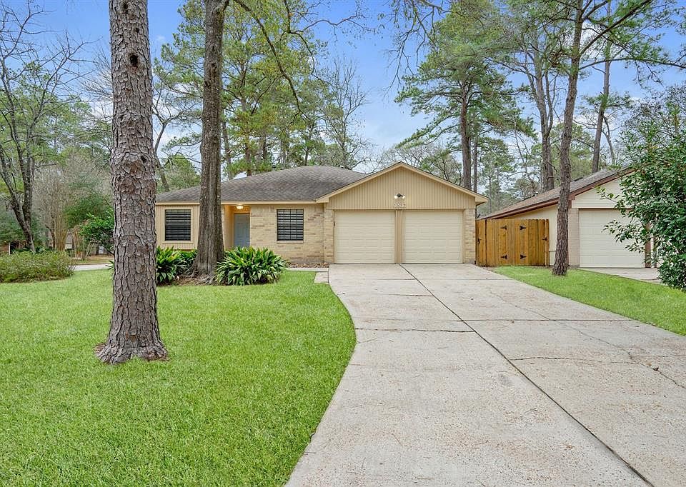 Charming home with 1,456 sqft, 3 bedrooms, and 2 full baths in a desirable central location in the Heart of the Woodlands in the Panther Creek community. This beautiful brick home boasts a 2 car garage that has epoxy flooring. freshly painted interiors, gleaming wood like tile floors throughout, ceiling fans, carpeted bedrooms, and pacious primary bedroom offers built in shelving, walk-in closet and en suite bath. Updates throughout that include updated kitchen cabinetry and bathrooms, new range in 2020, new water heater in 2019, roof is 6 years young, and hvac was replaced in 2009. Retreat to the private, fenced backyard that is ideal for relaxing or entertaining and offers additional storage space in the shed. Conveniently located a short distance to Sally Ride Elementary school and Panther Creek Shopping Center