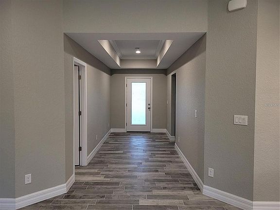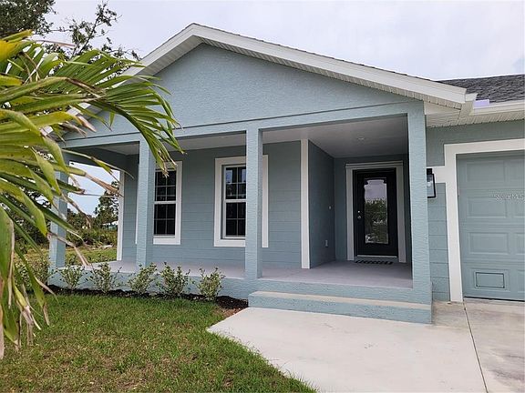 A BEAUTIFUL and welcoming home with a front porch to sit and relax on. As you enter the home, the grand hallway draws you in, bringing you to the expansive open floor plan living area and the screened in lanai beyond. Plank tile throughout. The kitchen has granite counters, closet pantry, stainless steel appliances, island with breakfast bar to sit 4, and pendant lights. Primary Bedroom's transom window gives you both the sunshine and the privacy, with tray ceiling and walk-in closet. The primary bath has double sinks and walk-in shower. All bedrooms have ceiling fans. Guest bath has a tub/shower combination. Separate laundry room equipped with washer and dryer.