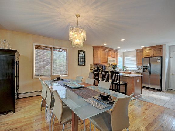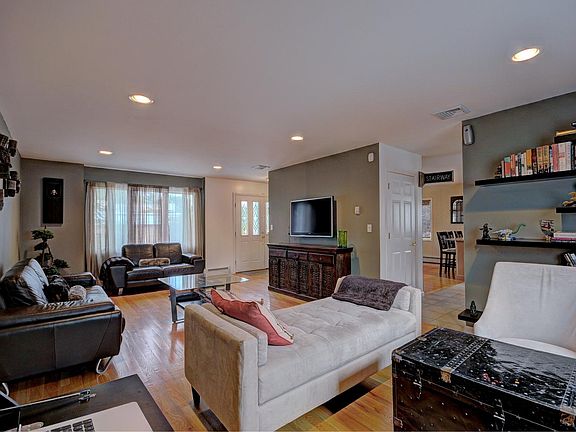 Newer construction duplex with magnificent open floor plan, oak hard wood floors throughout, kitchen boasts porcelain tile floors, with granite counter tops and maple cabinets. There is a huge living room, dining room, & half bath to complete this perfect first floor. There are three bedrooms, a beautiful main bathroom, one master bedroom suite & master bathroom, to complete this spacious 2nd floor there is a pull down staircase to a large attic. Basement is finished into two areas with one side composed of a movie theater cinema and the other having a recreational play room with rubber floor mats for toddlers. Off the back of basement is a large storage, laundry and utility area. This house is ultra efficient w/ Anderson windows, 50yr roof, 4 zone high efficiency heat, 3 ton C/A, and solar panels.