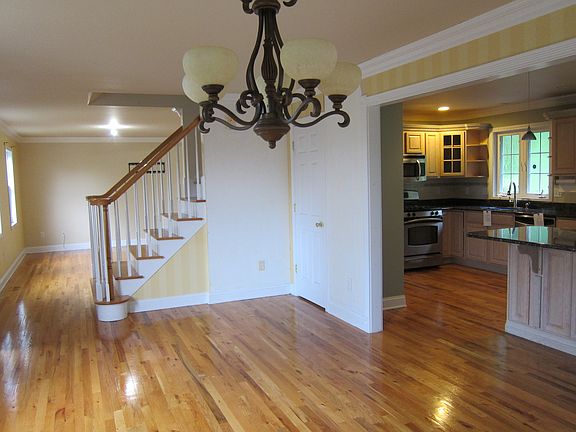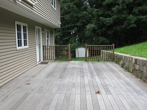 Spacious young Colonial located at the end of a dead end Street. The main level has a modern large newer eat in kitchen cabinets with granite counter tops & stainless steel appliances, Refrigerator not included. Large living/Dining rooms , combination of half bath and Laundry, gorgeous hardwood floors throughout. Upper level large master suite with a walk-in close and a full bathroom with a separate shower, two other generous sizes bedrooms, a main full bath and hardwood floors. For exterior privacy a large Deck overlooking treed back yard.