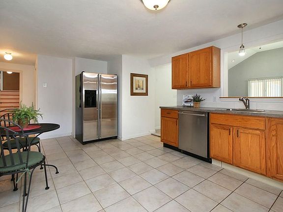 Spacious, light-filled, contemporary multi-level home with an open floor plan and vaulted ceilings. First floor offers a living room with central fireplace, kitchen with stainless steel appliances, a huge family room that opens to the fenced backyard and pool, a dining room, full bath and the perfect home office. Up a few steps to the entire second floor master bedroom suite with master bath, walk-in closet and sliders to your private outdoor deck with hot tub. Just a few more steps to the third level guest bedrooms and another full bath. Attached two car garage, new roof, hardwood floors, skylights, great location with easy access to highways and commuter rail. Town recently named in top 10 happiest places to live in MA. Happiness found!