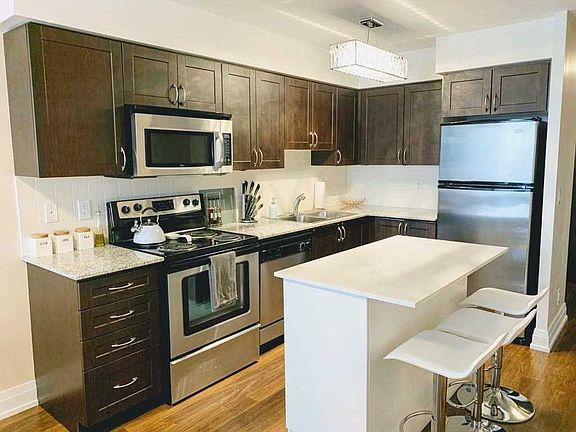 Stunning 1 Bedroom + Den At Sheppard & Allen Rd (Sheppard West Ttc Station). Metro Place Condo Provides A Sleek And Modern Open Concept Living Space. This Unit Is Stunning! 1 Bedroom Includes Spacious Walk-In Closet, Beautiful Dark Laminate Wood Flooring Throughout And A Gorgeous 3 Pc Bath. The Large Balcony Has An Eastern Exposure With Views Of The Cn Tower. Extras:Kitchen