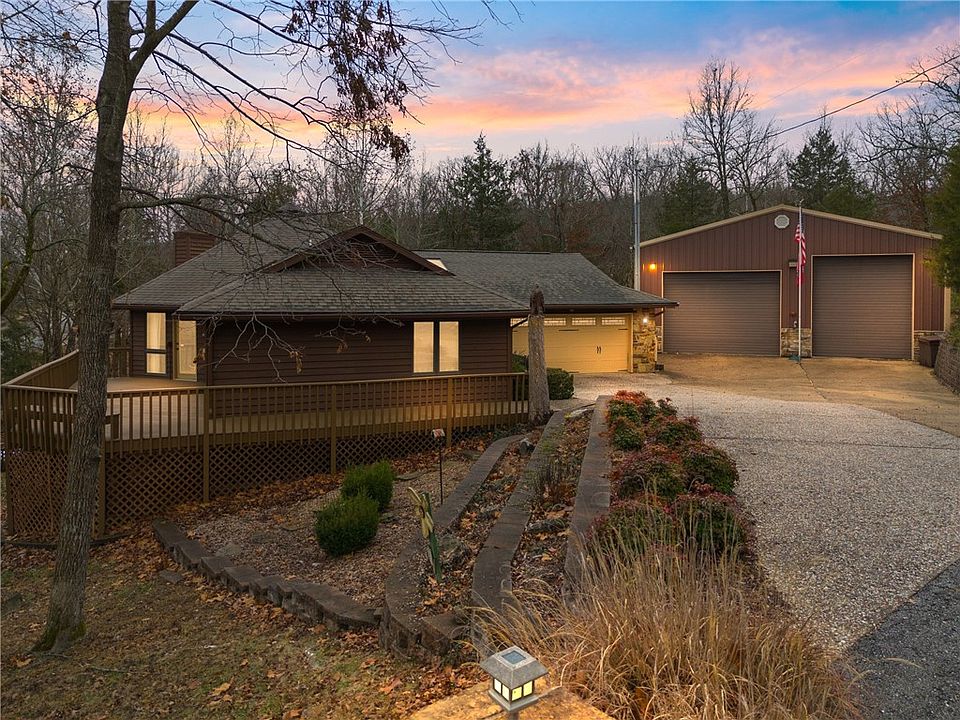 A beautiful well-kept lake home on the Island, in the beautiful City of Holiday Island! Step inside and soak in the breathtaking views of Table Rock Lake from the spacious great room and front deck. Four bedrooms which include the primary bedroom and two others on the main floor and a private bedroom is accessible from an outside stairwell in the rear of the house which also leads to the Jacuzzi room and wet bar with a relaxation/gaming area. The full kitchen upstairs is equipped with everything you need, and there's even a cozy sunroom to enjoy your meals and morning coffee while enjoying the views. Detached from the home is a huge shop/RV garage (40x60, 2400 sf) big enough to store the largest RV and your boat as well, in the back of the garage is a workshop fully equipped with heat and air and its own half bath. The area amenities include swimming pools, an 18 & 9-hole golf course, trails, parks, tennis, pickleball and a full-service Marina with rentals. Come and see what you are missing out on!