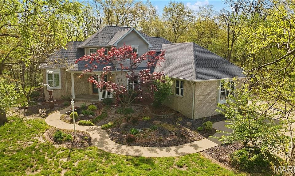 PRICE REDUCED! Nestled on a quiet cul-de-sac on a 2-acre wooded lot, this serene property offers a country feel while close to town. The 1-owner, custom built home is situated in the Highland School District. Features include a 2-story foyer & great room with cozy gas fireplace. The well-appointed kitchen includes quartz countertops, tile backsplash & stainless appliances. Retreat to the main floor primary suite, complete with private sunroom. Upstairs, you’ll find 3 additional bedrooms & a full bathroom, offering both privacy & functionality. The lower level is complete with a sprawling rec room, flex room, 1/2 bath & storage. Relax in a 2nd sunroom, on the expansive composite deck, or large stone firepit area overlooking the private pond. Conveniently located near I-70 & just 38 minutes to St. Louis! Seller is offering a 1-year home warranty. Before making an offer on any property, buyer should independently verify all MLS data derived from various sources & not warranted accurate.