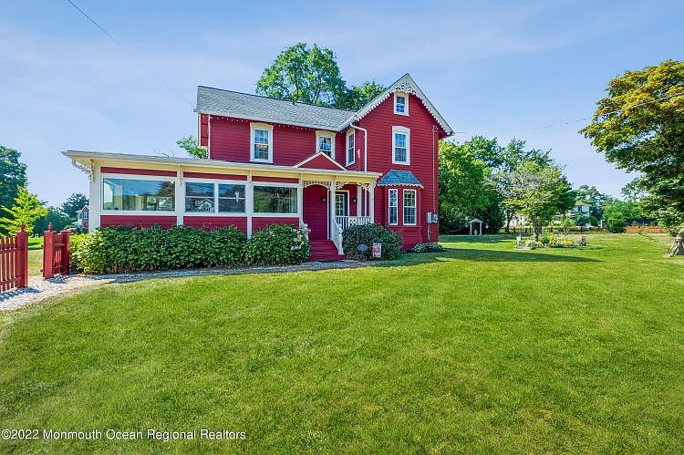 This beautiful charming Victorian Farm House sits on approx. 1 acre in Desai Estates, an upscale neighborhood with homes in $ 's. near the Colts Neck border. The home's newer addition built to add a master bedroom 2nd floor if desired. The addition has large kitchen which opens to the great room, and entire first floor contains high ceilings, beautiful trim, and moldings. This home has large wrap-around enclosed porch with separate heating, and a c, very large dining room, and large living room with charming built-ins, original pine wood flooring in most of the home. This Victorian farm house has many newer features 3 zone heating , and air conditioning, newer enclosed porch, new roof, newer Hardie Plank Lap siding, newer windows, newer systems explained in seller's disclosure.