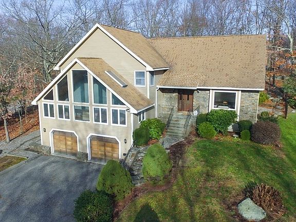 Sitting on a corner lot, you'll love all the space this home provides! Custom designed, the first floor has a large dining room, a large eat-in kitchen with a Viking range and custom cabinetry, fireplaced living room, a large sunroom & a first floor bedroom. Head down to the finished basement with Italian stonework fireplace & floor with a built in bar, so perfect for entertaining! The enormous primary suite with vaulted ceilings and a huge main bath with jacuzzi tub and shower stall are on the second level as well as an additional king sized suite with private bath, perfect for au-pair or in-laws! Two additional large bedrooms and a full bath complete this level. Every bedroom has generous closet storage, and large windows allowing plenty of natural light. So much potential in this house! The highly efficient heating and a/c system is only two years young, as well as the flooring throughout the first level. This cul-de-sac neighborhood is perfect for families & close to highways