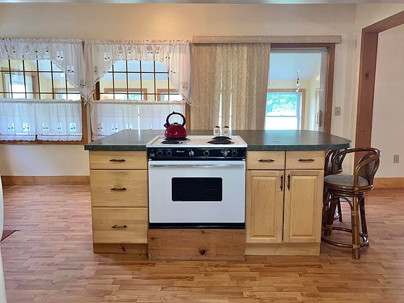 This edge of the village home on town water has a country feel for sure. With a generous 0.5+/- acre multi-level lot, it's perfect for the new owner who's outdoor space needs are a priority too. Whether that is for entertaining, furbabies, or gardens... you decide. Or, do it all! Enter the home from the covered back porch into the spacious kitchen with a large island, spacious enough to be eat-in if that suits you. The serious cook will be happy with the counter space for prepping and baking and also with the abundance of cabinets... room for all the spices, cookware, and gadgets. Open the sliders and step down into the 3 season porch that looks like a sunroom, bright and cheery with a close range mountain view, perfect for a bug free summer evening. A large archway from the kitchen to the living room means conversations aren't interrupted to go and check on dinner. A formal dining room with wainscoting is another archway off the living room. A bonus room off the dining room would work for an office, or a first floor bedroom if the need should arise. It's nice to have options! A 1/2 bath with laundry wraps up the 1st floor. Upstairs you will find a large primary bedroom with a Jack and Jill full bath shared with a 2nd bedroom. Head outside to the detached garage with power and a basement level. Lots of room for storage and hobbies. A large retaining wall with stairs brings you to the upper, level lawn areas hinted at earlier. There are options here, both inside and out!