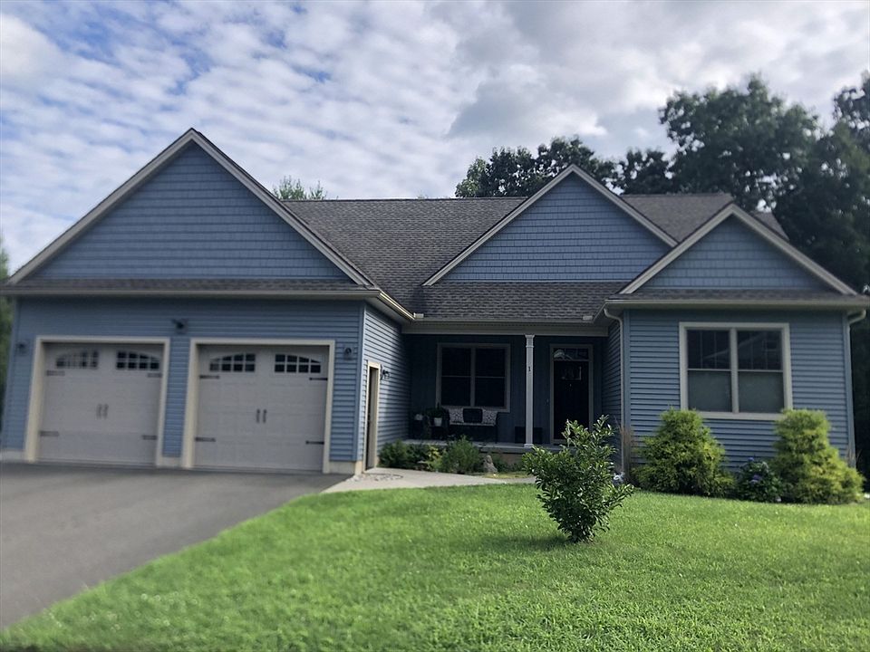BETTER THAN NEW! First buyer walked. Their loss is your gain. This 5 year old, modern ranch is centrally located. Town water and sewer and a short, flat paved driveway for low maintenance living. Quiet, walkable neighborhood with sidewalks, professional landscaping, and street lights. 1912 sf of open concept living appoints the first floor with 2 beds and a full bath on one wing, and a large master bedroom with tray ceiling, master bath, and walk-in closet on the other wing. In the heart of the house is the dining room and living room with a gas fireplace that opens to the kitchen and a covered trex deck overlooking the woods. White oak flooring, tiles and modern white quartz counters throughout. 1,000 of additional living space in the walkout, finished basement. Propane heat, owned underground tank. On-demand hot water. Central air. ERV and UV light with HEPA filter for fresh air and RO system for pure drinking water