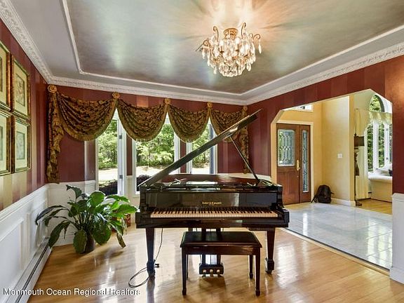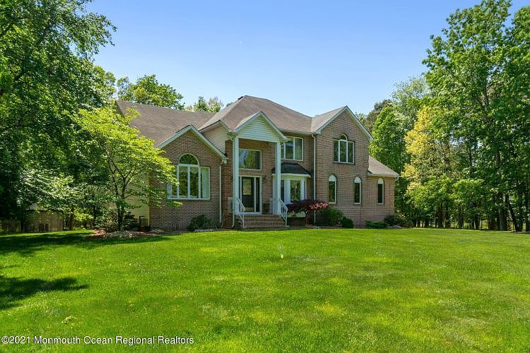 LOCATION, LOCATION, 5 BEDROOM 3 1 2 BATH SINGLE FAMILY BRICK FRONT HOME ON 3+ ACRES OF PROPERTY IN A CUL-DE-SAC WITHI NORTHERN MANALAPAN. THIS ONE OF A KIND HOME WITH CATHEDRAL CEILINGS IN THE FAMILY ROOM, WOOD BURNING FIRE PLACE AND CUSTOM MANTLE, FRENCH DOORS LEADING TO FORMAL LIVING ROOM, DINING ROOM, 5TH BEDROOM OFFICE COMPLETE THE FIRST FLOOR. DOUBLE ENTRY DOORS LEAD INTO THE MASTER BEDROOM WITH LARGE WALK IN CLOSET, VAULTED CEILING, MASTER BATHROOM WITH SHOWER, SOAKING TUB and SKYLIGHT. ADDITIONAL UPGRADES INCLUDE MOLDING, WINDOW TREATMENTS, CENTRAL VAC, CENTER HALL CHANDELIER. FULL FINISHED BASEMENT WITH BUILT IN BAR, FULL BATHROOM. OVERSIZED BACKYARD, PATIO, SPRINKLERS and LIGHTING. DON'T MISS SEEING THIS HOME!