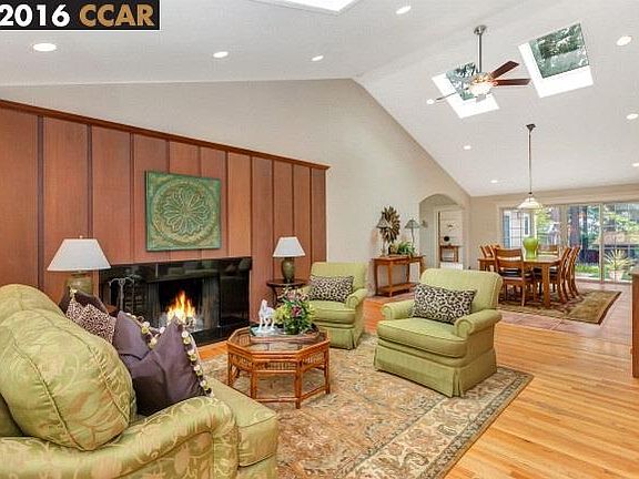 This exquisitely remodeled 2,600± sq. ft. single level home has a stunning open floor plan that is bathed in natural light and integrates perfectly with a sprawling, sunny and mostly level backyard. A detached 500± sq. ft. structure offers the opportunity for a fabulous home office, workshop or potential guest cottage. Located in a highly sought-after Orinda neighborhood, this spectacular property is close to 12 years of school, shopping, Moraga Country Club and so much more! * Wonderful open living spaces with dramatic vaulted ceilings, many skylights and custom recessed lighting * Light, bright living room with wood-burning fireplace and big picture windows * Sun-filled dining room graciously accommodates large gatherings and has easy access to the exterior patio and expansive back yard retreat * Gorgeous eat-in kitchen with slab granite counters, custom cabinetry, state-of-the-art stainless appliances and a stunning copper hood * Large sunny breakfast nook with built-in bench seating * Inviting family room / sitting room is centrally located * Four bedrooms including two master suites; the main master is a private separate retreat with a spacious bath and walk-in closet * Three full bathrooms * Large laundry room with ample storage and generous counter space * Detached office / workshop (not included in the square footage) with barn door access opening onto the lovely, serene outdoor setting * Breathtakingly deep backyard oasis … complete with lush lawns, patios, a play structure, and an adorable potting shed * Close to everything including 12 years of highly rated Orinda Schools
