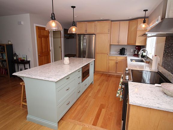 Spacious 2000+ square foot colonial with beautifully remodeled kitchen and baths! The bright kitchen features quartz tops, center island, stainless/black appliances, microwave drawer, stainless vented hood fan, generous cabinetry with soft close drawers, pantry cupboard with pull out drawers, and other special features. The first level has handsome hardwood and tile throughout as well as 6 panel doors, and an entry closet nook with bench seat. Spacious master bedroom with large walk- in closet.  Central vac, interior garage entry into basement, a pleasant 3 season porch, a full front porch and a large storage shed are additional features you'll enjoy.  Close to the downtown 5 corners area offer shopping, recreational, and dining options.  Come check it out, you won't be disappointed!