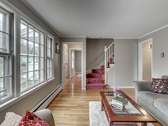 Standing ovation for this sought after North Wilmington location. This move-in condition storybook Cape with 3 bedrooms and 2 full baths is located on a corner lot in Hathaway Acres. Open concept kitchen with breakfast bar/island and dining room are the perfect place to entertain guests. The kitchen sliders open to an oversized deck overlooking level backyard. Kitchen has been updated with new stainless steel appliances, freshly painted and new flooring. The fireplaced living room is a great spot to cozy up with a glowing fire this winter. Front to back family room is located in the lower level with an additional finished area that is ideal for an office, craft room, workout area--the possibilities are endless. The entire home, both interior and exterior have been freshly painted. There is also a newer roof (2006) and boiler. Conveniently located near major routes and highways as well as the commuter rail station. Don't miss out on this fabulous home!