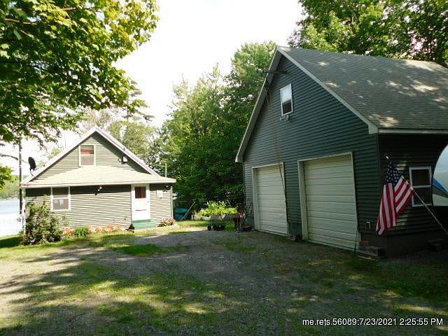 Wonderful Cape/Cottage on Kingsbury Pond. Home is hand crafted with knotty pine. Built-ins in most rooms. Open kitchen living room with Cathedral ceiling . From the kitchen you step out onto a deck overlooking the back yard and the water. Master bedroom is on 1st floor with built-in Bed. Loft bedroom with built-in bed and a 1st floor bedroom with built-in bunks. 1st floor laundry area. This property has 100 ft on the water with a great shore frontage. Large well landscaped back yard. Large 24x26 garage with a room that could be finished for extra rooms. This home has Solar and a generator. Private well and septic. This is a seasonal property but could be a year round with a couple modifications