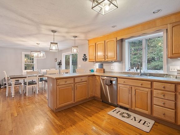 Check out this open-concept Cape-style home on a quaint side country road in the heart of Downtown Plymouth. Minutes to highway, commuter train, Plymouth Waterfront, shopping & amenities. The main floor plan has an open design w/ beautiful glossy hardwoods that flow from the main entrance to a large designated dining area & into a sun-filled kitchen with all stainless appliances. Step down into a spacious living room with a wood-burning fireplace. Half bath w/laundry completes the main floor—a full bath & 3 bedrooms upstairs including a large Master Bed w/skylight & ample closet space. The backyard is fenced-in and features a great patio. Also, there is a one-car garage.