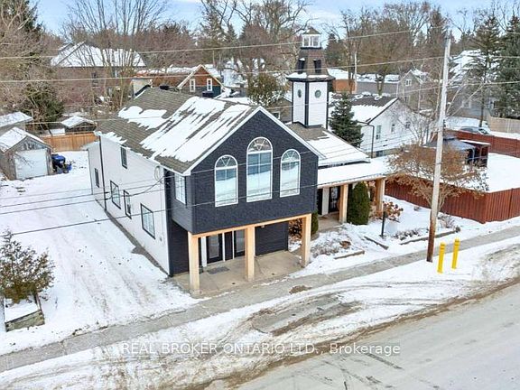 One-of-a-kind mixed property with retail/office space plus two completely separate apartments, each with their own main floor laundry. Located in the heart of quaint Cookstown just 5 minutes from the 400 HWY this property has had many successful businesses over the years. Fully gutted and renovated in 2021 and 2022 all 3 units offer different character to the space. The main commercial unit has huge wide plank wood flooring and a wrap-around covered porch. You enter through garden doors to a glassed in office space with 10-foot ceilings and to your right a ship lapped wall perfect for your businesss logo. Through the Egyptian antique doors to the huge board room with Balinese light fixture (and pot lights) and industrial style tile work. A small kitchenette area and 3-piece bathroom are also in this space as well as a huge storage area with garage door and back door for all of your storage needs. To the north of the storefront, you will find two additional doors. The closest door will take you to a one-bedroom apartment with soaring cathedral ceilings, with sleek modern kitchen and quartz waterfall Cambrian countertops. The bedroom has a massive walk-in closet which could also double as a gym or office space/nursery etc. as well as another closet. The 5-piece bathroom has a huge shower and stand-alone soaker tub with dual bathroom vanity. To the next door you will find an adorable one-bedroom apartment with barn doors, massive shower with floating vanity and main floor laundry. With tons of parking around back, a garage, as well as on the boulevard in front of the property your tenants or commercial visitors will never be at a loss for parking. Endless opportunities for this property. What business will you open up? Vacant open to any closing date.