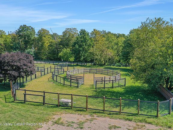 Welcome to a captivating horse farm estate nestled on 19 pristine acres in the picturesque town of New Paltz. This stunning property offers a harmonious blend of modern luxury and rustic charm, ideal for equestrian enthusiasts and nature lovers alike. The Main Farmhouse: The centerpiece of this estate is a fully renovated 1850 square-foot farmhouse. Impeccably updated to meet contemporary standards, this home combines comfort with style while preserving its classic character. Enjoy breathtaking mountain views and the serene beauty of the Wallkill River from your doorstep, creating a perfect backdrop for peaceful living. Equestrian Facilities: The property features multiple stables and a spacious pole barn, catering to all your horse-keeping needs. Whether you're housing a small herd or require ample space for equipment and supplies, these well-maintained structures provide functionality and ease. Guest Accommodations: In addition to the main farmhouse, a thoughtfully redone manufactured home is available for guests or farm handlers. This secondary residence ensures that everyone has a comfortable place to stay, making it an ideal setup for hosting visitors or managing farm operations. Land and Infrastructure: The entire property is surrounded by new fencing, enhancing both security and aesthetic appeal. Beneath the fencing, a sophisticated irrigation system keeps the land lush and vibrant, ensuring optimal conditions for both pastures and gardens. Embrace the ultimate lifestyle on this exceptional horse farm, where every detail has been meticulously crafted to offer a blend of luxury, functionality, and natural beauty. Whether you're an avid equestrian or simply seeking a tranquil retreat, this New Paltz gem is a rare find that promises to exceed your expectations.