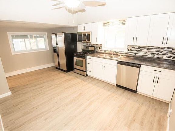 Enjoy one level living in this totally renovated 2 bedroom 1 bath level entry ranch home with first floor laundry in Fox Chapel School District~Enter the home to the large bright living room with neutral grey decor, lots of natural light, and a fireplace~The luxury vinyl plank flooring continues throughout the homes living areas~Brand new eat in kitchen with white shaker cabinetry, stainless steel appliances, and mosaic backsplash~Just off the kitchen is the first floor laundry and mudroom with built in cabinetry~Two bedrooms complete the main level with large closet space~Brand new bathroom with all new fixtures~Great outdoor space on the covered rear deck overlooking the flat level yard~Parking is no problem with off street parking for up to 4 cars~Tons of storage in the basement and two out door sheds~All mechanicals have been updated including new, hot water tank, ac unit, electrical, plumbing, and roof~This home needs nothing simply move in and enjoy!~