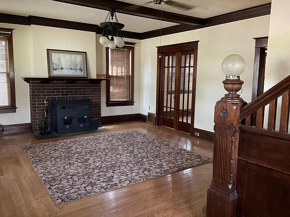 Situated on a large corner lot in the heart of Chanute, this dashing home is ready for a new owner to add to its many memories. Beautiful wood trim throughout this home boasting 5 bedrooms and 1 3/4 baths. The 3rd floor hosts 2 of these bedrooms that could also be utilized as office space. The 2nd floor accommodates 3 bedrooms, a full bathroom, a sleeping porch/sunroom, and a laundry chute to the first floor. Every bedroom has a closet with ample space. The main floor has a living room, dining room, kitchen, and 3/4 bathroom/laundry room. A wood-burning fireplace with an insert is located in the living room to provide additional heat. The basement houses a newer central air and natural gas heat system both installed in 2018. Detached double car garage with floored attic space is ready to house all the extras. Call for a showing today.