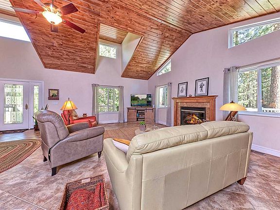 STEP ONTO MY FRONT PORCH! I'LL SHOW YOU AROUND! This home screams 'WELCOME" and COMFORT! Grand Porch and Entry - covered, all trex (like) Deck wraps around most of the home... and fully landscaped to provide total privacy! enter into the Great Room with high ceilings trimmed in Rustic Knotty Alder, Fireplace with gas logs (easy living!) and ceramic tile floors. Kitchen is perfect for ANY serious cook or many chefs! Caesar Stone Island with eat-in space; Corian counters, Rustic Knotty Alder Cabinets, Wine Fridge, Double Drawer Dishwasher; Gas Range, Compactor - all flows nicely into the dining room with engineered hardscrape flooring; French doors open out onto the deck from two sides... Bedrooms are spacious, high ceilings and opens onto separate porch. Master Suite with Deck access and ensuite master bath. BONUS: Upstairs above the Garage is completely finished space with full bathroom, Game Room; Office, Work Out Room --- YOU choose! AND THERE'S MORE: completely landscaped, fenced and so private and charming yard --- space for the RV with full hookups - wrap around deck, patio with pavers, lawn with seating area, all on sprinklers and timed... ALL this back up to GREENBELT and enjoys view of the 18th TEE and FAIRWAYS of Graeagle Meadows Golf Course! AND yet so closet to all the downtown Graeagle amenites, walk to the Millpond, Lattes at the Outpost? Breakfast at the Golf Course?