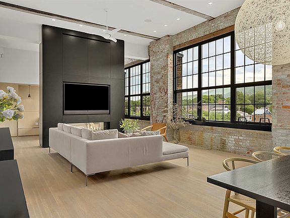 Offering 2 bedrooms, 2 baths this Industrial loft style condo is situated on the East end of Main St with stunning Mount Beacon views. The luxurious finishes highlight the open concept style living. Recently renovated featuring exposed brick, original steel & wood beam details, radiant heating, dramatic 12' x 12' windows along the eastern wall overlooking the Falls, the Fishkill Creek & views of Mt Beacon from every room. The open concept living with a chef's kitchen is great for entertaining with dual built in Wolf ovens, a Wolf induction cooktop, side-by-side designer Sub-Zero refrigerator & freezer. The breathtaking private outdoor rooftop deck space is an extra bonus in this unit. The dramatic two-sided Ortal Tunnel fireplace is the centerpiece of the living space. A master bedroom featuring custom built in cabinetry, 6' Italian Boffi Iceland tub situated in the master bathroom, super white marble on the floors & wall, finishing it with a niche modern chandelier. The dramatic staircase off the main living space leads to the roof deck's wet bar with under counter Sub-Zero, custom cabinetry, & a heated bonus room off the deck perfect for artist space or storage for your private parties. The endless Mt Beacon views finish the space to perfection.