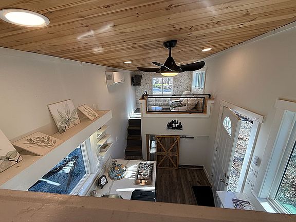 Charming Tiny Home on Wheels – A True Labor of Love Location: Locust, North Carolina (Delivery options available) Introducing Little Bear, a beautifully crafted 26-foot tiny home that blends comfort, functionality, and style. Built with love and attention to detail, this tiny home is perfect for those seeking a peaceful retreat, a charming Airbnb, or a full-time home embracing simple, intentional living. Key Features: Size: 26’ x 8’ (350 sq ft) Height: 13.5 ft | Weight: 14,000 lbs Certified: NOAH and ANSI certified Trailer: Kaufman-built, 14,000 lbs tandem axle Water/Sewer Hookup: RV-style setup, fully equipped for easy connections Electrical: 30-50 Amp service, RV-ready Plumbing: PEX and Charlotte Sch40 pipe system Lofts: 2 – Main sleeping loft (with TV and loveseat) + cozy crawl-in loft with barn door Interior Highlights: -Full Kitchen: Full-sized stainless steel fridge, 2-burner propane stove, undermount steel sink, solid maple cabinets with slow-close drawers, and durable quartz countertops -Bathroom: Full 48? bathtub with sliding glass door, flushing toilet, mini vanity sink, and a propane tankless water heater (20L per min) -Living Area: 7 windows for ample natural light, ceiling fan, and 9000 BTU Alpine mini split AC/Heating system Construction & Insulation: Insulation: R-15 foam in walls, R-19 foam in ceiling and floor Roof: Galvanized metal for durability Siding: Everlast advanced composite with burnt spruce pine accent Flooring: Water-resistant LVP Little Bear is designed for comfort and practicality with modern touches and rustic charm. Whether you’re looking for a turnkey vacation home or a unique rental property, this tiny home is ready for you. Interested in a tour or more details? Contact Liz & Brett for a video walk-through or to schedule an in-person tour!