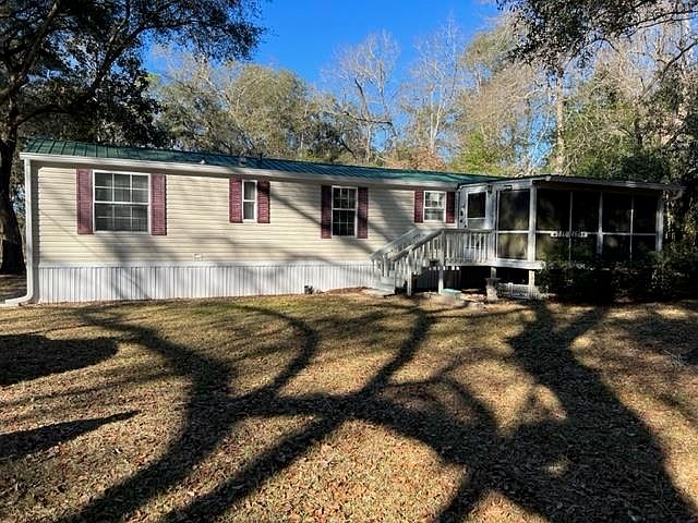 This very private 2/1 mobile features a light bright well maintained living space, 2 storage buildings on 2 acres of private land. Large covered screen porch. Ideal for a weekend getaway or hunting camp. New metal roof in 2015 and gutters, New frig in 2017, water heater in 2020. All furnishing is included!