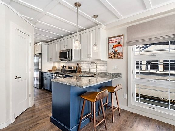 Welcome to your dream getaway - a captivating houseboat nestled on the tranquil waters. Offering a unique and luxurious living experience while providing you all the amenities of a contemporary home. Built in 2020, this magnificent house boat is the perfect alternative to condo living in Boston. The first thing that you will notice is how much this houseboat feels like a home. Coffered ceilings throughout, laminate wood floors, granite countertops, custom kitchen cabinets, S/S appliances with gas range for cooking, and a full size fridge. Customized walk-in tiled shower, granite counter-top vanity, shiplap walls are just a few of the things that make this houseboat unique. The spacious bedroom spills out to your own private patio looking out to the city. The upstairs deck is every entertainers dream, made up of 650 sqft offering enough room for a sectional, lounge chairs, a dining table, grill and a cantilever umbrella that covers the majority of the deck. This will go quickly!