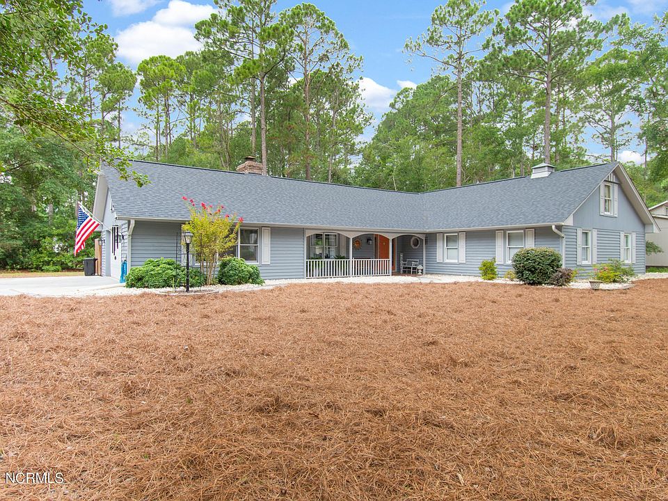 This spacious corner lot in the desirable golf community of Carolina Shores offers everything you need for comfortable coastal living. The home has been thoughtfully remodeled, featuring three bedrooms and two bathrooms. Located just a short drive from Sunset Beach, Cherry Grove Beach, and North Myrtle Beach, you'll enjoy easy access to pristine sands, area championship golf courses, local parks, dining in the world famous Calabash seafood restaurants and a variety of local shopping options. The community of Carolina Shores offers a pool, pickle ball courts, tennis courts and an on-site golf course. The property shines with its fenced-in backyard, ideal for entertaining guests. Enjoy three separate entrances in this newly installed fence. Inside, you'll find a beautiful Carolina sun-room bathed in natural light, with new sliding glass doors leading to your backyard oasis. The kitchen is a chef's dream with quartz counter-tops, a new cook-top in the large island, and upgraded stainless steel appliances that will stay with the home for a hassle-free move. This home has a separate dining area complete with a bay window allowing natural lighting and added space. The vaulted ceilings in the living area will give you a warm and cozy feel and the gas log fireplace is ready for a cold winter day. Enjoy the carefully crafted wainscoting in the entryway, giving this home character in every nook and cranny. The large primary suit will offer double vanity sinks, a water closet and spacious walk in closet for your wardrobe. Enjoy your newly installed 2024 roof and a 2022 hot water heater. Additionally you will find plenty of storage space in the large, side load 2 car garage. Need more parking than for just two cars? This extra wide driveway will give you plenty of added parking for all your toys, family and friends. What more could you want in your coastal golf property?