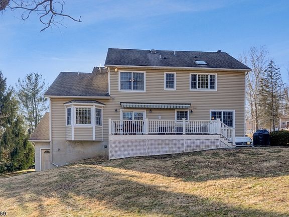 Absolute perfect SUN-DRENCHED colonial mins away from NYC (morristown)train. Classic charm set beautifully on a cul de sac and on 1 acre. Brookside section,with lemonade porch, amazing deck and open floor plan! Home features fabulous finished basement, large rooms, possible guest/playroom AND additional loft perfect for home office privacy or au pair. Retractable deck awning and efficient heating, heated floors in master bath and bathrooms updated with the finest touches. Laundry conveniently located off the kitchen. Home promises to impress!