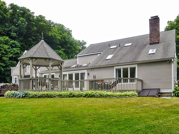 Wait till you see this fabulous North Stamford home on oh-so-pretty property on a cul-de-sac complete with babbling brook! Large rooms and great flow offer plenty of space & many options for any size family. Expansive eat-in-kitchen is updated with state-of-the-art cabinetry, stainless steel appliances and honed granite countertops. The dining room is just off the kitchen (currently used as an office). Large, friendly living room with see-through wood burning fireplace. The family room (currently used as a dining room) enjoys the other side of the fireplace, vaulted ceilings and skylights. The music room is delightful and has french doors to the deck. Behind the kitchen is a den that is currently used as a multi-purpose room equipped with extra appliances, storage and closet space. Continue on to the 1st floor master bedroom w/full bath (enjoy radiant heated floors) . Head upstairs to the 2nd floor master bedroom with vaulted ceilings, walk-in closet, full updated chic bathroom and dressing room equipped with tons of storage. Three additional bedrooms are serviced by the full hall bathroom. We're not finished yet! There is a bonus room connected to an office/study/gym with private deck. Oak hardwood flooring throughout (except bonus room), an open airy feel, 3 zoned central air (brand new in 2019), 5 zoned heating system and full house automatic generator. Meticulously maintained by owner, convenient to parkway, shopping, restaurants. Is this your new home?!