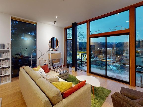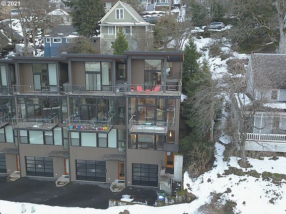 Gorge living at it's finest in this STUNNING 3 Bed/2 Bath contemporary townhouse just steps from downtown Hood River. Enjoy 180 degree views of the Columbia River, Hood River Bridge, & city lights from all 3 levels. Home features master-suite with balcony, walk-in closet, & hot tub. Kitchen has refinished concrete countertops, JennAir appliances, & gas stove. Open concept living/dining/kitchen area is perfect for entertaining. Home has new carpet, paint, & hardwoods were sanded and refinished.
