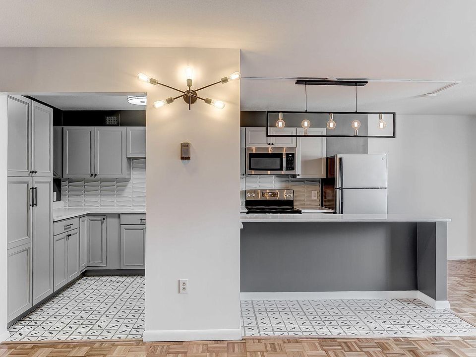 Stunning and modern, this sunny, spacious 1 bedroom/1 bathroom condo just completed an extensive high end top to bottom renovation. Located in the heart of Charles Village and just steps away from both Hopkins Homewood campus and Union Memorial Hospital, unit 508 in the University One Condominium is one of a kind. In the newly designed kitchen, outfitted for modern cooking and living, you will find designer finishes complimenting top of the line brand new stainless steal appliances. Plenty of cabinet space storage as well as a great breakfast bar for meals or use as a home work space. The spa-like bathroom consists of custom tile work throughout and a full shower/tub. Newly refinished parquet floors and freshly painted throughout. No detail overlooked in making this condo a sleek and modern home. Rent includes all utilities as well as access to the newly renovated gym and rooftop pool. This is a well maintained, very secure building with a 24 hour front desk attendant. Building has garage parking available for an extra fee. No pets, no smoking.