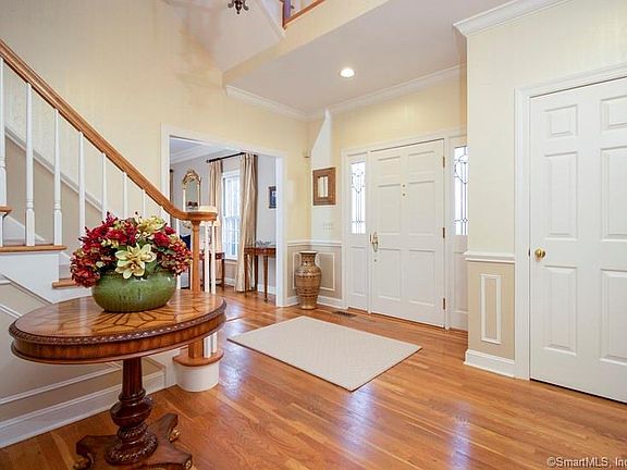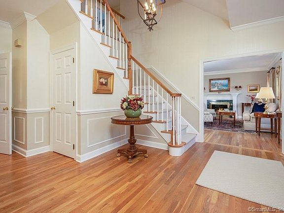 Stately and inviting 5 bed/4.5 bath Georgian colonial home located in premier south Wilton neighborhood. This spacious home offers the ideal floor plan perfect for today's lifestyle. Entertain family and friends in the open concept eat-in chef's kitchen and family room complete with high end appliances, 2 islands, wet bar and fireplace. French doors lead to a gorgeous stone patio where you can bbq on the outdoor grill and then relax by the fire pit or hot tub. For more formal occasions, there is an elegant dining room and living room. Handsome and private office perfect for working from home. Take note of the beautifully appointed mill work throughout the inside and outside of the house. Lovely master bedroom w/ spa bathroom and dressing room size closet. The 4 additional bedrooms offer plenty of space. Special rooms not found in every home include a heated porch/man cave as well as an in-law/au pair set up in LL that includes a bedroom, full bath and kitchenette and a bonus room over the garage. Huge and level yard perfect for soccer plus a putting green to brush up on your game. Four Winds Farm is a sought after community of 24 distinctive homes on 52 acres with a gazebo, skating pond, walking trails and cul de sac perfect for biking riding and walking the dog. Convenient to town, trains, highways, neighboring towns. City Water. There is very little turnover, so get in while you can.