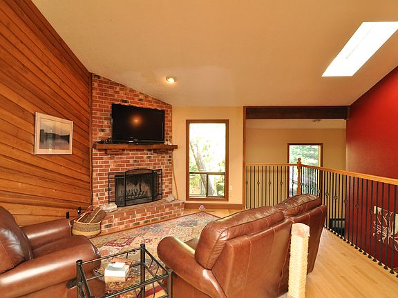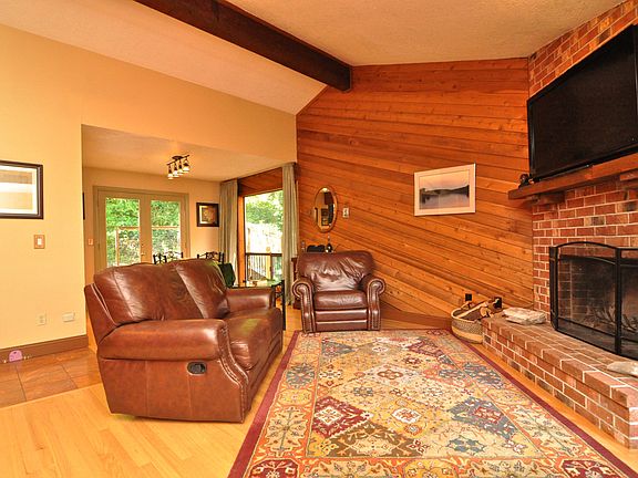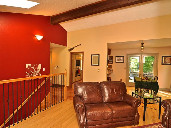 This beautiful contemporary home is nestled in the trees and backs to greenspace, offering a private, park-like feel. The vaulted ceilings and many windows bring in light and nature. Lovely open floorplan With updated kitchen & baths & newly refinished hardwood floors. Spacious master suite w/ fireplace. Two bedrooms up. Enjoy the wonderful Mountain Park amenities: pools, tennis, fitness, trails! Great condo alternative. Welcome home!
