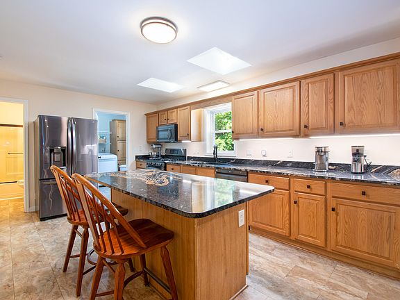 OPEN HOUSE SUNDAY 3/17/2024 @ 1:00PM - 3:00PM - A Forest Sanctuary! Tranquil living in Maine's untouched beauty with this stunning ranch home, surrounded by the Androscoggin River and babbling Pinkham Brook. Meticulously renovated in 2021, this 3-bedroom, 4-bath haven marries modern luxury with rustic charm. From your window, capture glimpses of local wildlife and feel a profound sense of unity with nature. Step into a radiant open-concept space, full of warmth and elegance. The gourmet kitchen is a chef's fantasy, with rich oak cabinetry, granite countertops, and a generous island tailor-made for gatherings. Modern gas appliances harmonize perfectly with a traditional wood-burning pizza oven; start your culinary adventure. The living room is the heart of this open space home, featuring a Ravelli pellet stove with mesmerizing flames and high-efficiency heating. The family room has a second Ravelli and exceptional broadband connectivity: perfect for work or play, without sacrificing comfort or style. Relish the opulent master suite, complete with a lavish bath and spacious walk-in closet. A huge bonus room adjoins the deck and living room - ideal as an office, game room, or auxiliary guest space. Step outside onto an expansive, maintenance-free Trex deck with elegant aluminum railing offering panoramic views of your forest. Explore trails that lead to the secluded water's edge, an idyllic setting for kayaking, fishing, or nature walks.