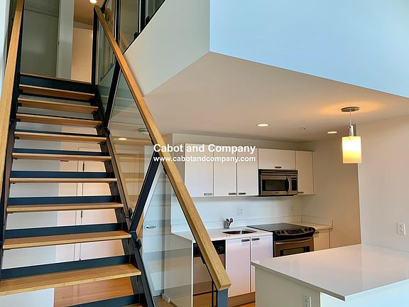 Iana Ulianova ; CABOT AND COMPANY Stunning lofted duplex with floor to ceiling windows, 1.5 baths, laundry in unit and parking included in the rent! New stainless appliances, quartzstone countertops, bamboo floors, and plenty of closet space. Unbelievably high ceilings with floor-to-ceiling windows let in lots of natural light! Enjoy central AC, in-unit laundry and a great location! Amenities include a 24- hour concierge, valet dry-cleaning service and free EZ Ride shuttle service to North Station and Kendall Square. Pets are considered! Available July 15. Broker Fee: 1 month For showings please call iana