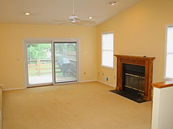 Fantastic updated end unit on private cul-de-sac street! This unit has been well maintained and is highlighted by: eat-in kitchen with updated Bosch gas cook top, cabinets & counters, dishwasher & ceramic tile floor also with vaulted ceiling with skylight and peninsula counter; Dining room with green house window; Living room w vaulted ceiling, wood burning fireplace and newer oversized sliders (w/ between the glass blinds) out to spacious deck; Master Bedroom w/ full bath and walk in closet with organizers, ceiling fan and linen closet; 2nd Bedroom w/ ceiling fan and double closet & windows; full finished basement with great room, built in bar, full bath with stall shower and extra room with with double closet and newer wall to wall carpeting; garage with automatic opener.