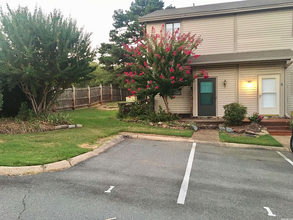 Nice Townhome on a corner lot with vinyl Siding, newer roof, and two parking spaces. Large Great Room with high ceilings and beautiful Fireplace. Nice Kitchen with refrigerator, microwave and more. Two large bedrooms upstairs with nice covered deck off of Master bedroom. Nice covered patio with large storage room and fenced in courtyard. Washer & Dryer stack unit stays. One year First American Home Warranty with upgrade.