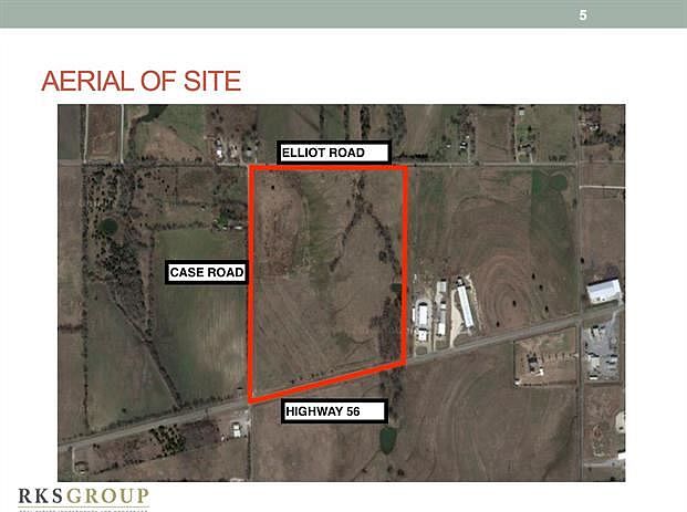 Prime highway frontage on bluff with excellent visibility & terrific access in desirable location just east of Preston Road. Road frontage on 3 sides makes this property easy to subdivide. Flat level acreage suituable for buy and hold investment and future development. Tollway expansion thru Grayson Cty projected to cross Hwy 56 a few miles west. City of Sherman in process of annexing site, will bring services and added level flexibility in future.