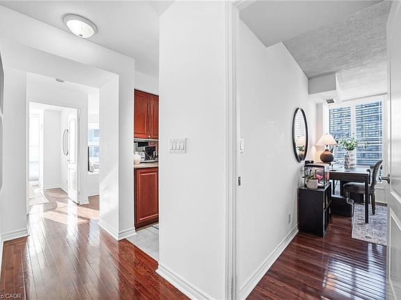 Immaculate Daniels-built corner suite featuring 2 spacious bedrooms and 2 full bathrooms, ideally situated in the vibrant core of Mississauga. Just steps from Square One Mall and the upcoming LRT line, this luxury condo showcases upgraded hardwood flooring throughout and breathtaking views from the balcony, living room, kitchen, and both bedrooms. The thoughtfully designed layout places bedrooms on opposite sides for added privacy, while the eat-in kitchen offers a welcoming breakfast area. This well-maintained building is known for its low maintenance fees and exceptional amenities, including a saltwater indoor pool, modern fitness centre, 24-hour concierge, guest suites, party and meeting rooms, library, billiards, recreation room, and ample visitor parking. A convenient variety store in the lobby adds everyday ease. Unbeatable central location within walking distance to public transit, future LRT, schools, parks, cafés, shops, restaurants, plazas, and office towers. Nearby landmarks include Celebration Square, Living Arts Centre, City Hall, and theatres. Quick highway access (403/QEW/427/401/407) plus GO train and bus services make commuting a breeze.
