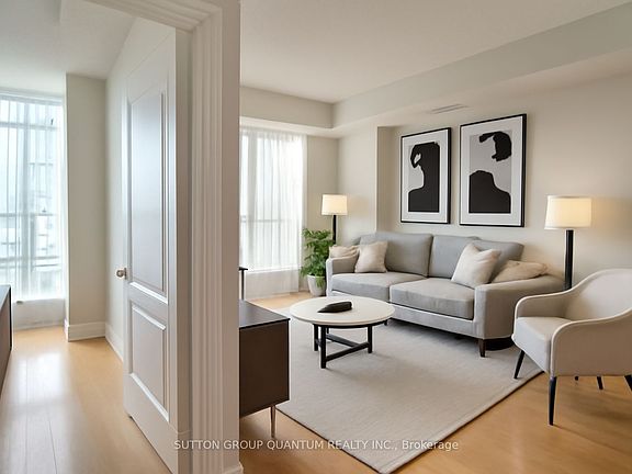 This stunning corner two-bedroom condo in the heart of Mississauga's most desirable City Centre area offers incredible value for its size, featuring a spacious and well-designed split bedroom layout with two full baths, 9-foot ceilings, and beautiful solid hardwood flooring throughout. The bright and airy corner unit is filled with natural light, thanks to its large windows and walkout balcony, which showcases breathtaking south-facing panoramic views from downtown Toronto to Lake Ontario. The prime bedroom boasts an ensuite bathroom, while the living and dining room combo is surrounded by expansive windows, complemented by a second full bathroom adjacent to the spacious second bedroom. Freshly painted. Proudly offered by the original owner, who has meticulously maintained the condo in excellent condition. Residents of this luxury building enjoy top-tier amenities, including a gym, sauna, indoor pool, party room, games room, and 24-hour security for a safe, comfortable lifestyle. Perfectly located steps from the future LRT, GO Station, Square One Shopping Centre, and major highways (QEW & 403), this condo offers unmatched convenience. Whether you're a first-time buyer, investor, or downsizer, this spotless corner unit in a well-managed Daniels building is a rare find, featuring a large balcony with serene courtyard views, an ensuite laundry, and no carpet anywhere. Enjoy a family-friendly neighbourhood with schools and daycare within walking distance, plus spectacular skyline views and even fireworks from your private vantage point! Don't miss this opportunity to own a bright, move-in-ready gem in one of Mississauga's most sought-after neighbourhoods. Parking & Locker Included. Easy to show! Some images are virtually staged/furnished as Artists Concept.