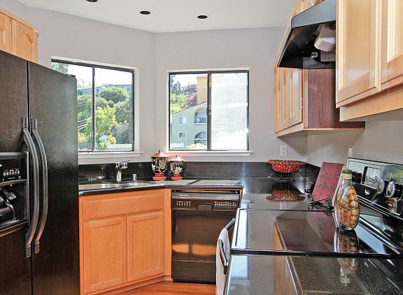 Stylish 2-bedroom, 2-bath condo overlooking splendid city light & Bay views has wide windows, skylights, hardwood floors, & an open floor plan which creates a feeling of spaciousness. Updated, kitchen w/granite countertops is open to the dining area. A community pool & spa, nearby downtown amenities & parks, excellent schools, & easy access to commuter routes make this a great place to live.