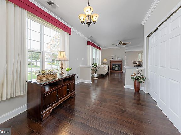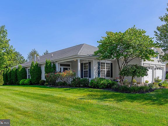 Introducing 1 Embassy Drive in the desirable 55+ Community of Four Seasons at Weatherby. This lovingly maintained, move-in-ready "Captiva model" is nestled on a generous corner lot with privacy-enhancing trees and bushes. The excellent floor plan, freshly painted (08/2024) neutral walls, crown molding (foyer, living room, dining room) and wainscoting (dining room), and stunning hickory flooring throughout the main areas except the kitchen, set the stage for a comfortable and stylish experience. This home checks all the boxes and feels like a true retreat! As you enter, you'll be greeted by a welcoming foyer leading into a versatile living and dining room combination. The open area offers flexibility for arranging furniture and decorating to suit your personal taste. A dedicated home office provides the perfect space for productivity, or options to use as an exercise, craft, or guest room . The gourmet kitchen is a chef's delight, featuring a double wall oven, a built-in microwave, an electric cooktop, granite countertops, a pantry, plenty of cabinet space, a Breakfast Bar, and charming Breakfast Nook with a bay window. Adjacent to the kitchen, the gathering room boasts a gas fireplace (serviced 9/2024), creating a warm and inviting atmosphere. Step into the tranquil owner's suite with two walk-in closets, an attached luxurious bath, a soaking tub, shower, dual vanities, linen closet and more... The second bedroom and bath are great for your special guests. Enjoy additional relaxation in the Sun-Room, which opens to a delightful backyard and exquisite paver patio with an entry/exit gate. The quaint front porch will be your favorite spot to reflect after an enjoyable day. The main floor laundry room adds convenience to the home. A two-car garage includes walk-up storage above, providing ample space for all of your needs and treasures. The HVAC was replaced in 2023, permits obtained, and final inspections were completed (2024). Embrace the Lifestyle this 55+ Gated Community has to offer with a wide range of amenities, and easy commute to major routes, shopping, restaurants, and medical facilities. Don't miss the opportunity to enjoy the good life and make this exceptional home yours!