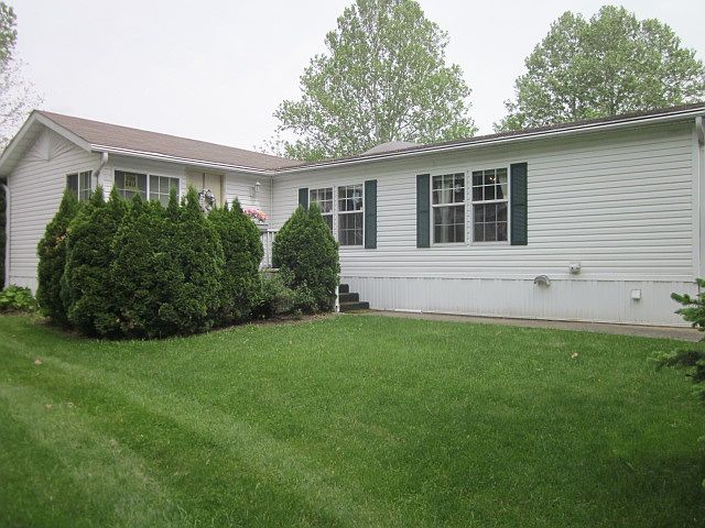 Wonderful 3 bedroom 2 bath manufactured home on beautiful Irish Lake at Lake Estates. Pier space on Irish Lake allows you access to Barbee Chain of Lakes. Open concept kitchen, dining and living room with a 4-season room. Enjoy relaxing on any one of 2 decks and a patio area. Lot rent includes water, sewage, trash, access to the club house and pool. Pier space within walking distance of home. Beautiful kitchen with lots of cabinet space and a walk-in pantry. Walking paths around Lake Estates. One-car carport gives shelter on those stormy days. Attached 10'x12' shed. Come make this your summer retreat or live in it year round! Also available is extra lot for storage building for a nominal fee per month.