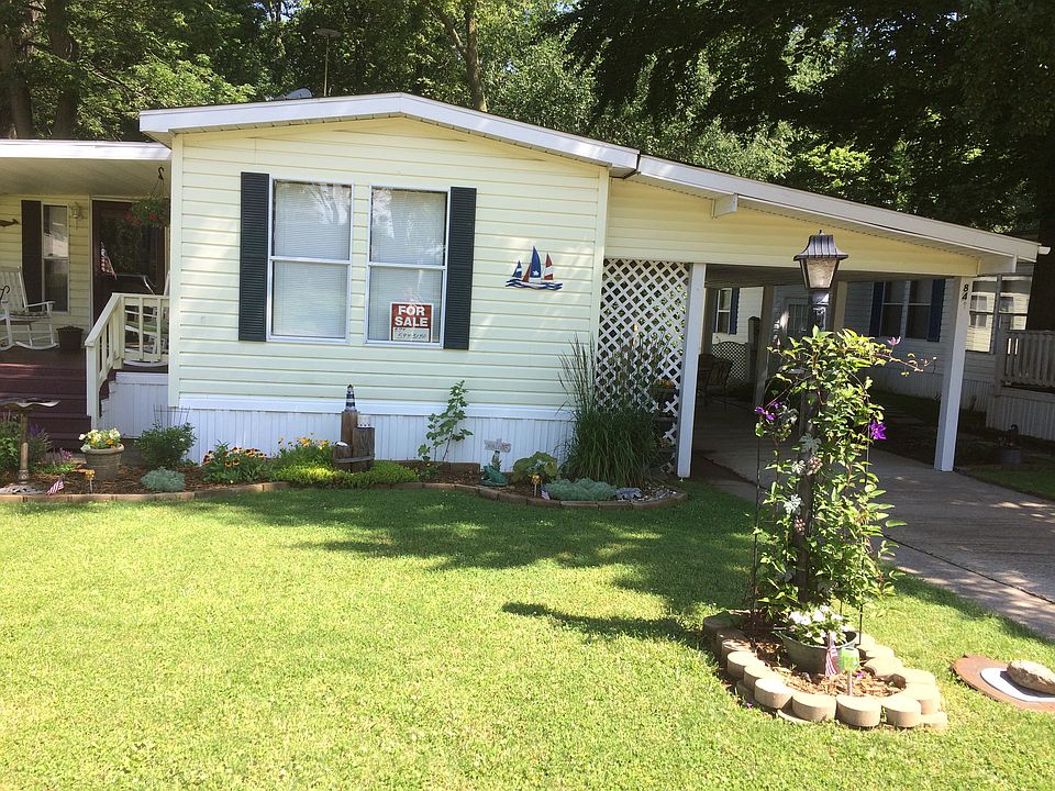 IRISH LAKE AS SEEN ON HGTV Beautiful manufactured home in Lakes Estates on Irish Lake, one of the seven in the Barbee chain of lakes as seen on HGTV Lake Front Bargains. Home has been meticulously maintained and is move-in ready. With two bedrooms, two full baths, family room, formal living room, extra-large kitchen, two covered porches, and one back deck. This home makes the perfect summer cottage or full-time home in a welcoming year round lake community with a pool. Adjacent carport and street parking allow plenty of room for guests at summer cook outs, or to gather around the fireplace on a winter's night. Large mature trees line the grassy lake side of the lot and a community wooded area leads to the lake front with a dedicated pier. The front of the home is landscaped, has healthy full grass, and loads of annuals and perennials. Home has adjacent matching shed for storage. Some furniture can convey-negotiable. The furnace and water heater are four years old, water softener is five months old. Kitchen countertops are corian. Home sits on a hill looking down on a channel 2 I was lik Home sits on a hill looking down on a bay to Irish Lake With our own pier and a two minute boat ride to Irish like to I was with their own pier and a two minute boat ride to Irish Lake enroute to the other six lakes in the Barbee chain for skiing, tubing, etc.